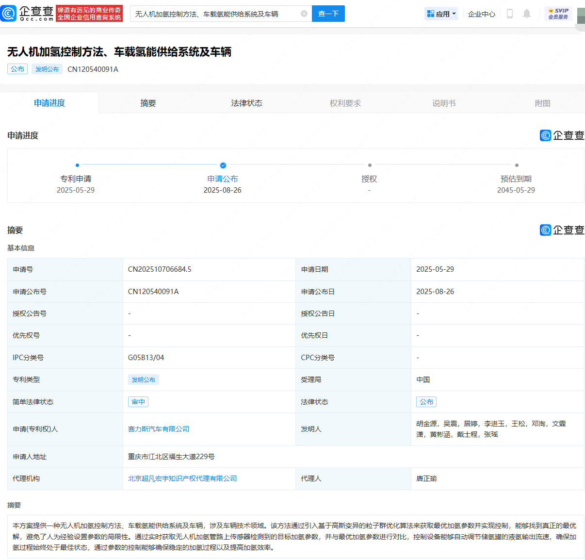 8月26日第一配资门户,赛力斯汽车有限公司申请的“无人机加氢控制方法、车载氢能供给系统及车辆”专利公布。专利摘要显示,本方案提供一种无人机加氢控制方法、车载氢能供给系统及车辆,涉及车辆技术领域。该方法通过引入基于高斯变异的粒子群优化算法来获取最优加氢参数并实现控制,能够找到真正的最优解,避免了人为经验设置参数的局限性。通过实时获取无人机加氢管路上传感器检测到的目标加氢参数,并与最优加氢参数进行对比,控制设备能够自动调节储氢罐的液氢输出流速,确保加氢过程始终处于最佳状态,通过参数的控制能够确保稳定的加氢过程以及提高加氢效率。